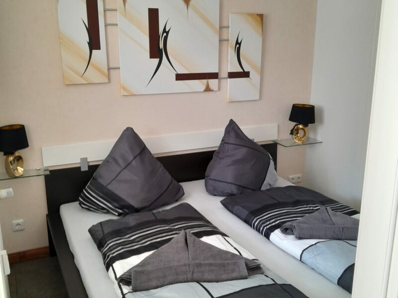 Es erwarten Sie bei uns zwei separate Schlafzimmer, ein Wohnzimmer, eine komplett eingerichtete Küche und ein Badezimmer mit Dusche, Waschtisch und WC. Die Wohnung hat Platz für 4 Personen.