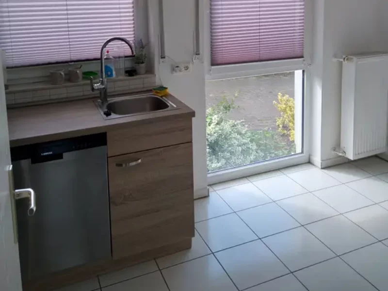 Bodenfliesen, sowie einer nagelneuen Einbauküche